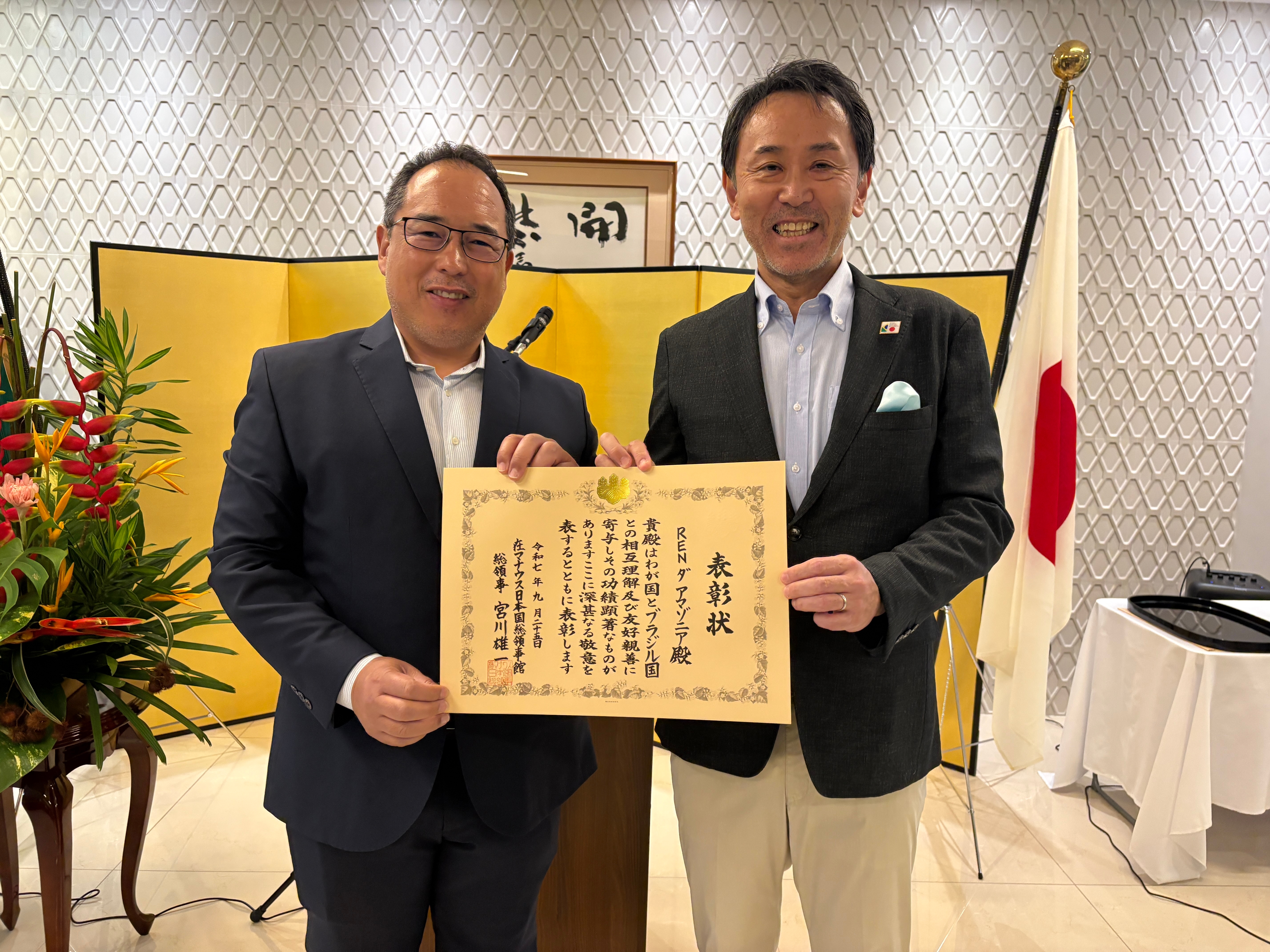 9月25日、宮川総領事は、第1回RENブラジル全国大会記念レセプションの機会に、当地REN・ダ・アマゾニアに対し在外公館長表彰を授与しました。