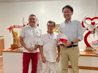 同日、宮川総領事は日本人名がついているタダシ・イノマタ校やリョウタ・オヤマ校、また、ブラジル北部で最大規模の文化行事であるボイブンバの各チームの本部訪問、パリンチンス日伯協会関係者との懇談などを行いました。