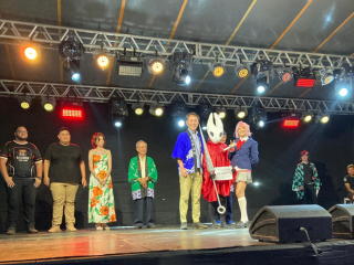 同じく4日、パリンチンス市にて、在外公館文化事業として当館とパリンチンス日伯協会共催で第3回島祭りが開催されました。日本武道デモンストレーション、和太鼓演奏、ダンス、コスプレコンテスト、盆踊り大会などが行われ、大変盛り上がりました。アマゾナス州のパリンチンス市でも日本文化は大人気です。