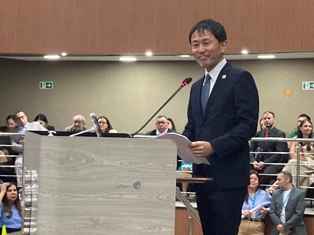 Em seu discurso, o cônsul-geral Yuichi Miyagawa ressaltou o significado do ano em que o Bairro Colônia Japonesa foi oficializado e expressou sua gratidão a todos os envolvidos.